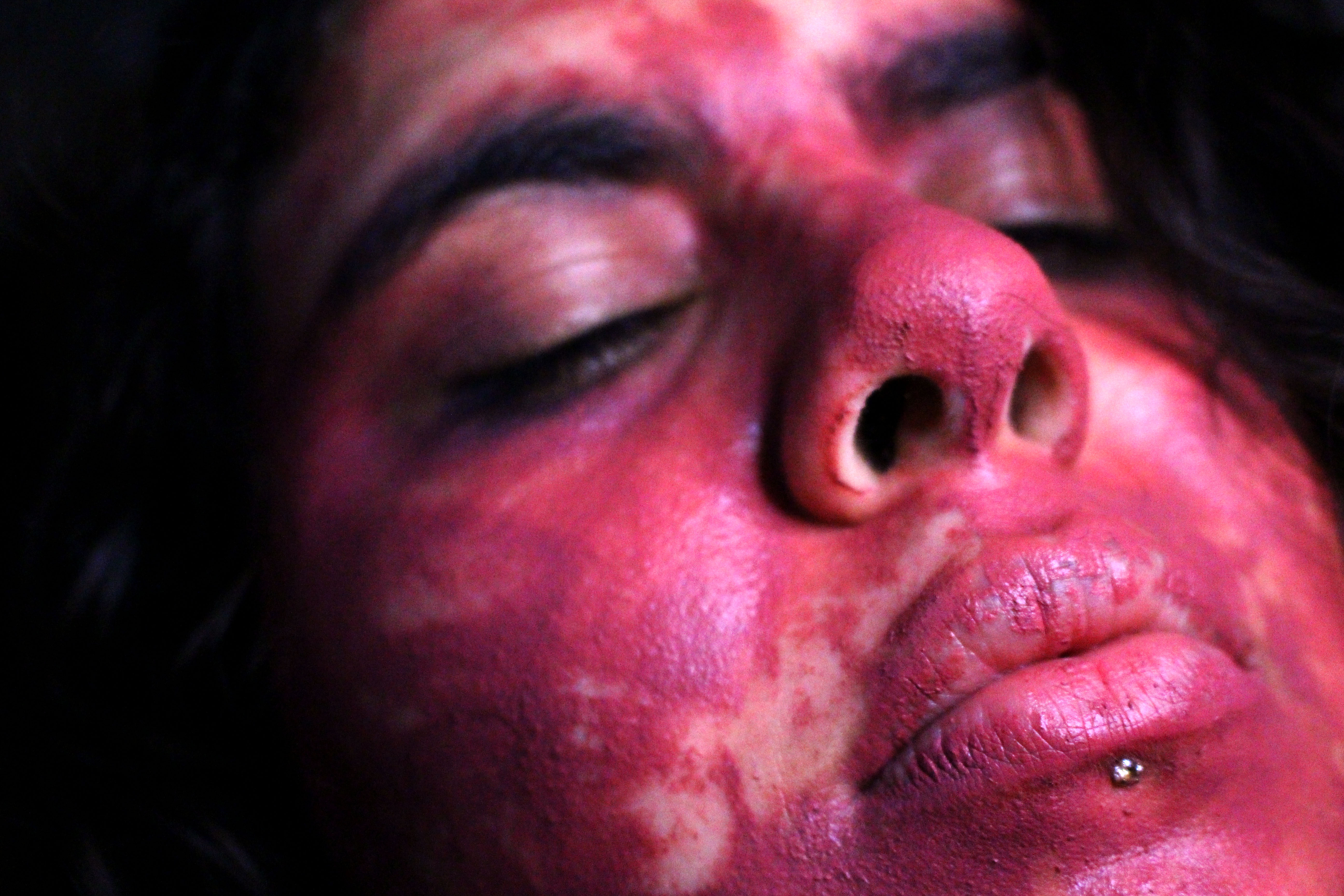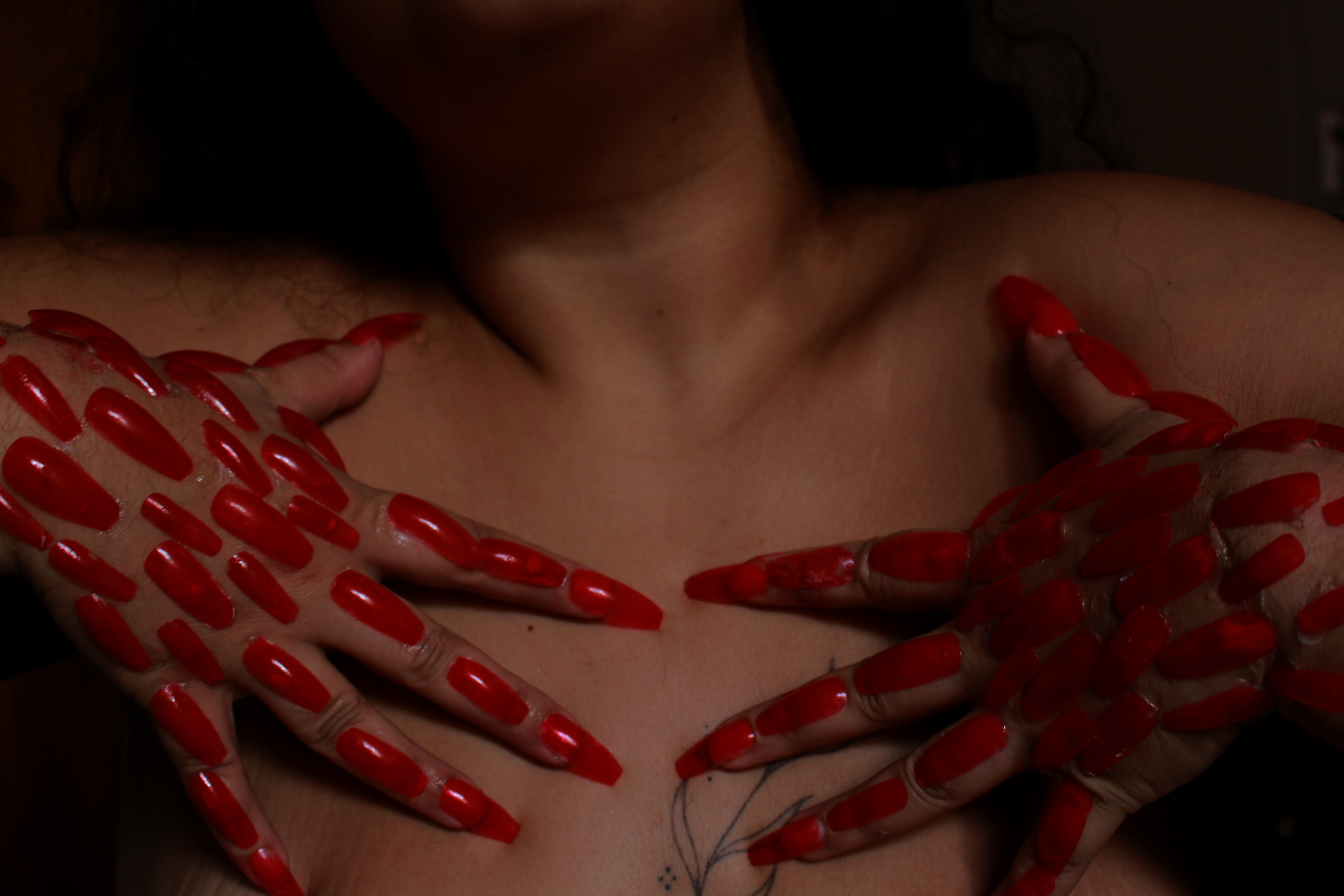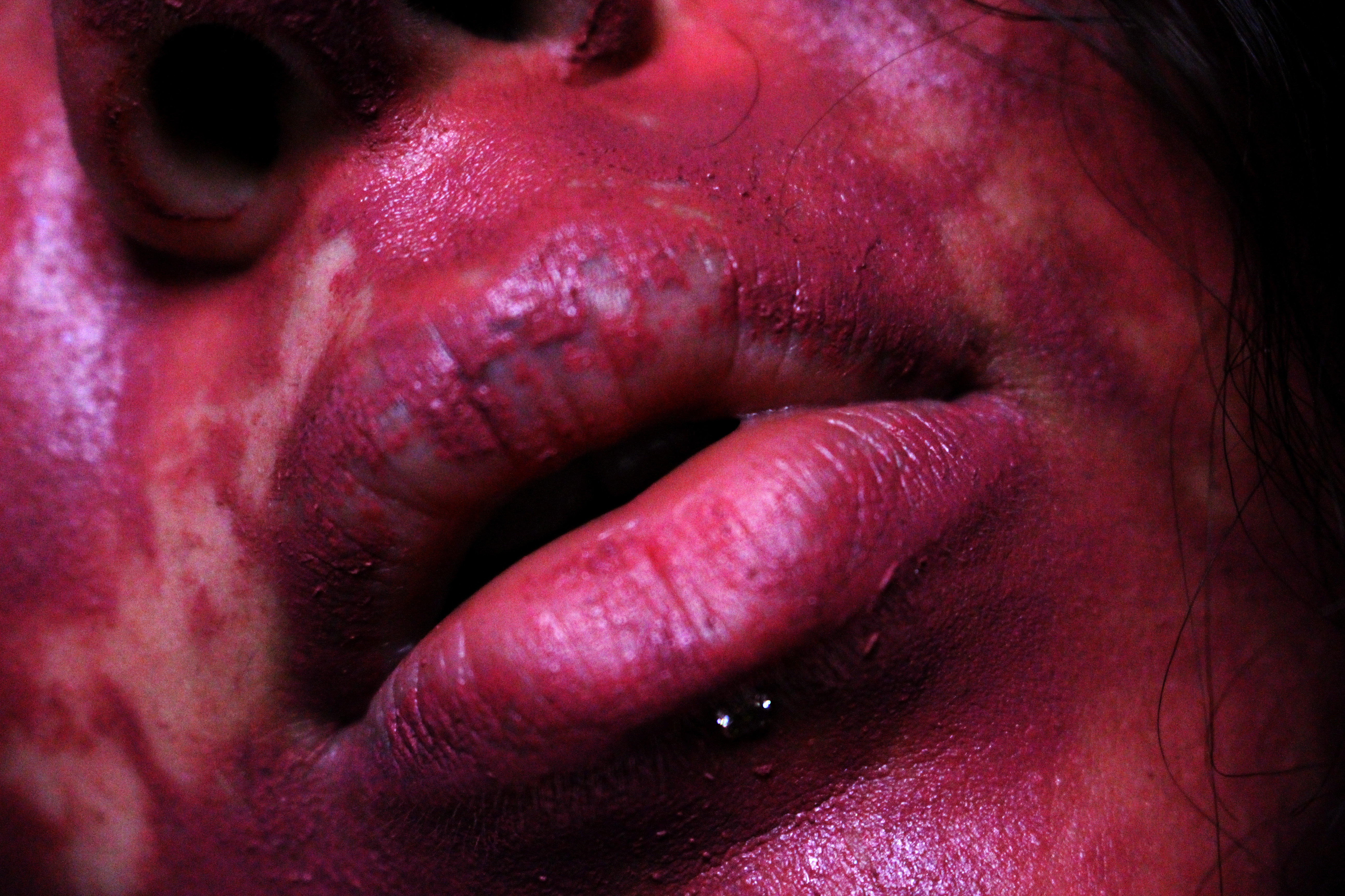 In this project Mousicos applies domestic ‘beauty products’ and glamorous items to herself and performs them with intent on highlighting their insidious meaning. The exaggeration and perversion of the use of these makeup items is done in service of creating an uncomfortable environment for the audience. Mousicos is intent on creating discomfort as a way to demonstrate her own complicated feelings on presenting gender as well as ideas of self-mutilation in the pretence of delivering ‘femininity’. The work takes on the subjects of body trauma, gender/queer identity and ‘hyper-femininity’. Mousicos’ works often strive to unnerve the viewer in order to confront their socialised and preconceived ideas surrounding norms and values.
