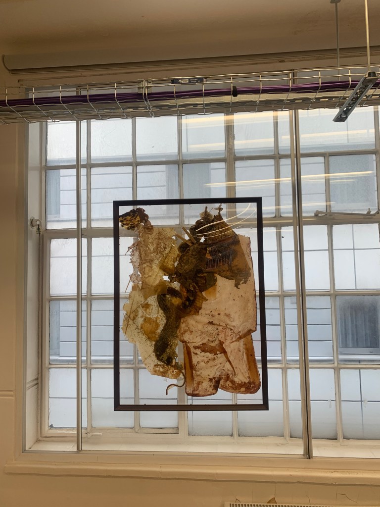 These works are a result of a collaboration between Ashling Fidler, Natalia Ozga and Mikaella Mousicos. The project focuses on themes each artist explores in their own work; the body, trauma and memory. In having the work be a collaboration, the artists have displayed a collective experience. The artists were able to meditate on these experiences through this process. This stems from the artist’s personal belief that traumas are more easily managed by sharing one’s experience. Free of ambition, the work is made as personal expression with the idea that it will connect to a viewer.